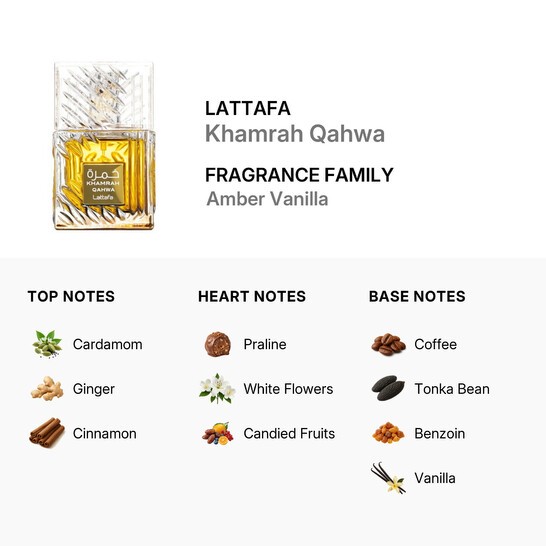 Indulge in the rich, exotic aroma of Khamrah Qahwa, a captivating 2023 evolution of the world-renowned Khamrah series by Lattafa. This unisex masterpiece belongs to the Oriental Spicy Gourmand family, uniquely infused with a dark, roasted coffee twist. Designed for those who appreciate high-performance, luxurious scents, Khamrah Qahwa blends traditional Middle Eastern spices with a creamy, delectable heart—making it an unforgettable choice for any fragrance connoisseur.